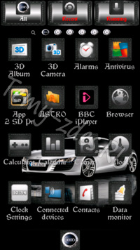 Тема в тёмных тонах для смартфонов Андроид на автомобильную тематику от tinkerbel с Ауди ТТ на фоне.