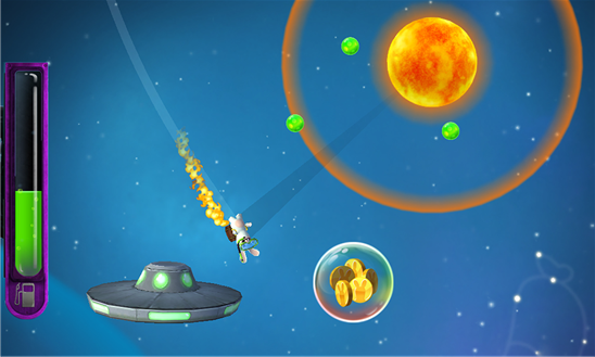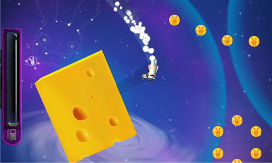 - Используйте биту, чтобы запустить кролика в космос, направляйте его движение с помощью летательного ранца и не забывайте про гравитацию.