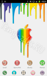 Очередная яблочная тема для Андроид смартфонов, на которой тает и растекается на все цвета радуги логотип компании Apple.