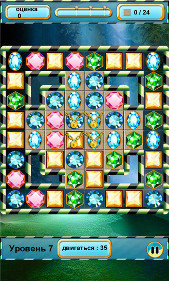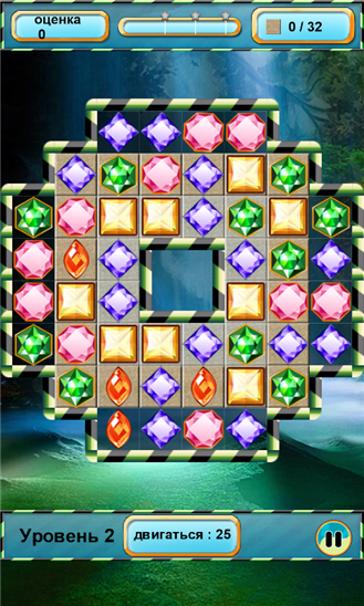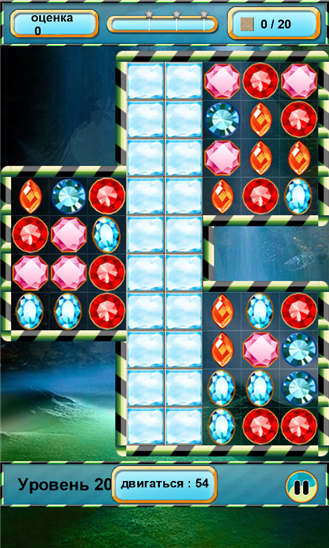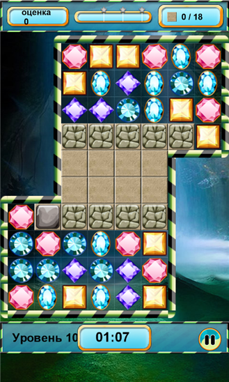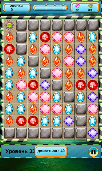 Красочная игра, в которой необходимо собирать в одни непрерывный рад по три и более цветных камней одного вида. В каждом уровне для решения задачи вам дается ограниченное количество ходов. Некоторые ячейки могут быть заморожены, быть непроходимыми. Для освобождения таких ячеек нужно взорвать рядом с ними несколько камней.