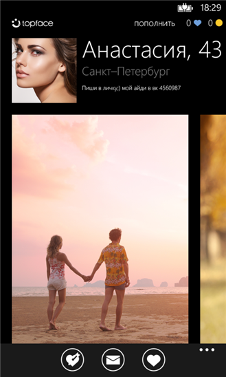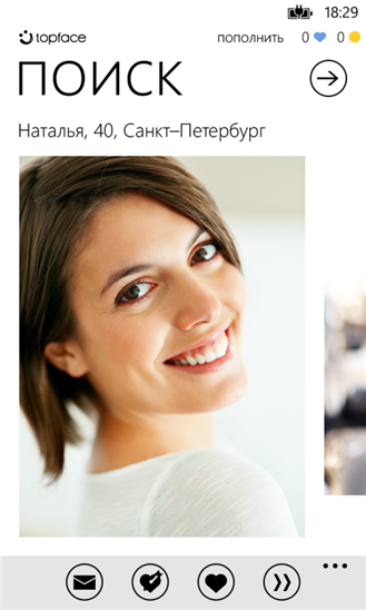 Позволяет находить интересных знакомых, будь то девушки или молодые люди с похожими интересами и увлечениями по всему миру. Это могут быть новые знакомые для переписки, общения, и, возможно, для чего-то большего. Используя Topface, вы увидите, что знакомиться с теми, с кем хочется, - так просто!