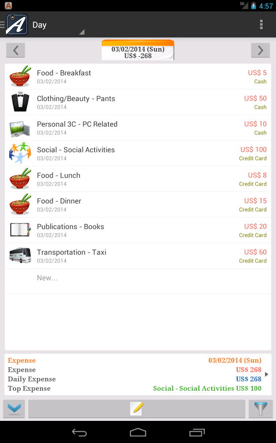 Один из лучших инструментов для ведения бухгалтерского учета, эффективного отслеживания каждого отчета о расходах. AndroMoney является персональным инструментом финансирования для использования на Вашем мобильном телефоне. С помощью этого инструмента, мы надеемся, вы сможете лучше управлять своим бюджетом.