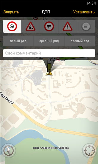 • добавление дорожного события (например: «авария правый ряд»);- своевременное перестроение маршрута на основе полученной информации о пробках;