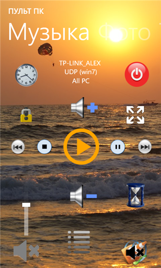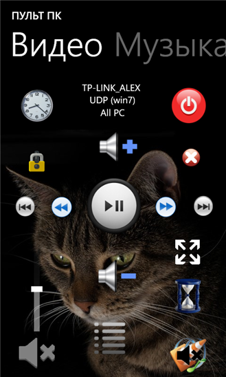 С помощью WP8 приложения "Пульт ПК" (Клиент) можно управлять компьютером с Windows XP/7/8 (Сервер), изменять уровень звука, ставить проигрыватель на паузу, включать и выключать компьютер. Для работы программы необходима домашняя WIFI сеть, к которой подключены смартфон на базе WP8, компьютер с Windows 7 подключенный к этой же локальной сети. Программа клиент устанавливается на смартфон, на компьютер устанавливается программа сервер.