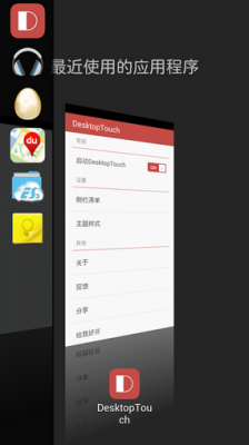 DesktopTouch Категория: интерфейс Разработчик: Znteam Версия: 2.2 Платформа: Android 2.2 Русский язык: + Скриншоты: Описание: Боковая панель для часто используемых приложений для Android-устройств. Скачать: