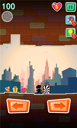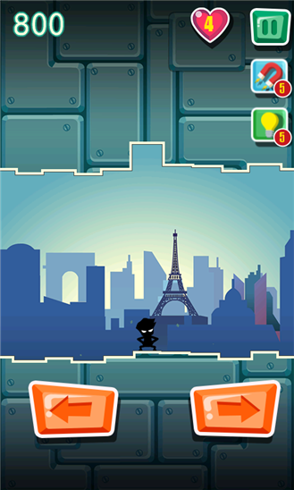 Вы должны найти убежище для человечка перед тем, как на город обрушится землетрясение и раздавит его. Убежище – это небольшая ниша между рушащихся стен, где можно спрятаться. По пути к спасительному месту вы можете подбирать подарки и бонусы.