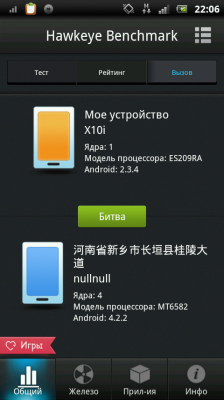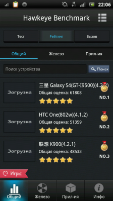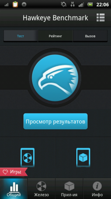 Hawkeye Benchmark является профессиональным эталоном совместимости производительности аппаратного и программного обеспечения для устройств Android. С помощью одного клика, пользователи могут запускать общий тест для проверки всех аспектов их устройства или выборочно проверить аппаратные и программные компоненты. Hawkeye оценивает результаты различных устройств, благодаря всестороннего тестирования процессора и оперативной памяти на производительность устройства, ввод хранения/вывода данных, SD карта чтение/запись, 2D и 3D графики, и производительность базы данных, в то время как компонент совместимости программного обеспечения достигается за счет тестирования совместимости приложений с устройством. Используя эти результаты, Hawkeye затем компилирует списки высоких, средних и низких по производительности приложений для каждого устройства, чтобы помочь пользователям принимать более разумные решения при выборе приложений для оптимизации их телефона.