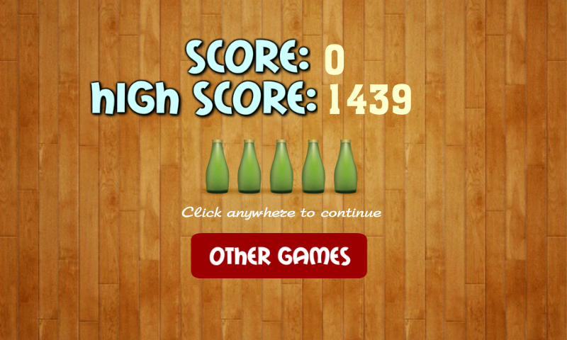 Отличная игра для того что бы скоротать время! Смысл игры очень очень прост - берем автомат и стреляем по бутылкам! На 1 игру дается 1 минута, расстреляйте как можно больше бутылок! Ставьте рекорды и соревнуйтесь с друзьями!