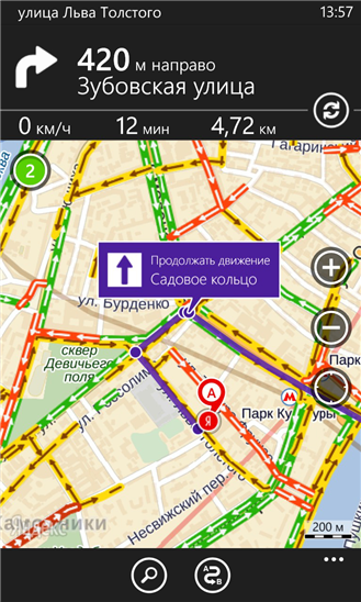 - ведение по маршруту (расстояние, скорость, время в пути) и автоматическое перестроение маршрута при отклонении