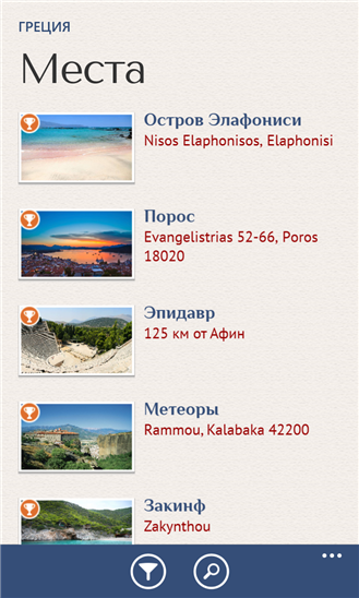 - возможность отмечать понравившиеся места и формировать из них списки «где я был» и «куда я хочу»