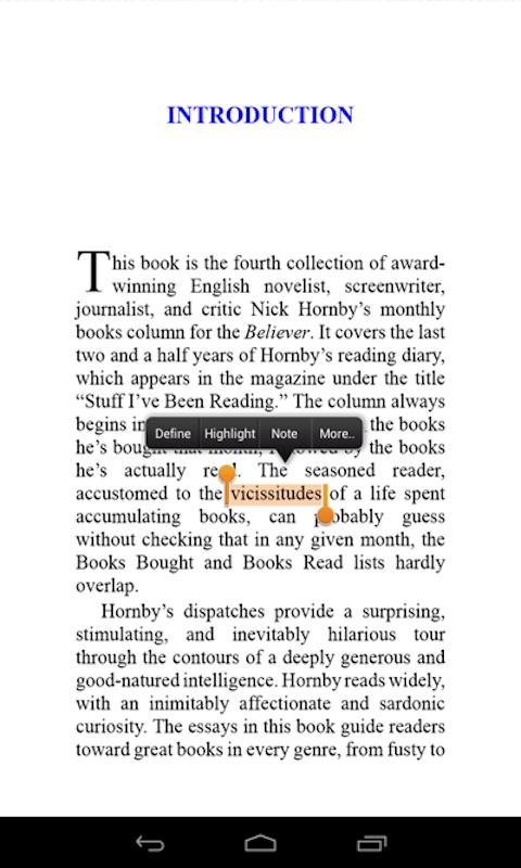 Если вам не подходят традиционные читалки, советуем попробовать данное приложение. Безусловно, Bluefire Reader, не является вау-ридером, но это вполне неплохая программа. К ее сильным сторонам относится хорошая функциональность и бесплатность. Также приложение дает возможность читать книги с защитой Adobe DRM. Слабой стороной Bluefire Reader является нестабильная работа с pdf-файлами и отсутствие синхронизации между устройствами.