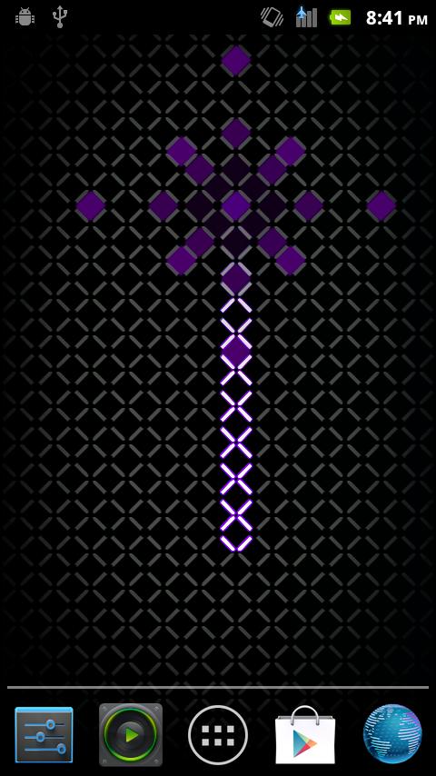 Эти живые обои выполнены в виде светящейся сетки, которая может всячески реагировать на прикосновения, а также создавать некое подобие цепной реакции при длительном касании. Приложение сделано очень даже добротно и оригинально и смотрится вполне достойно. В настройках обоев можно изменить цвет ячеек.