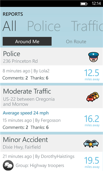 - Возможность зарабатывать очки и повышать ранг в вашем сообществе, отправляя отчёты о событиях на дороге