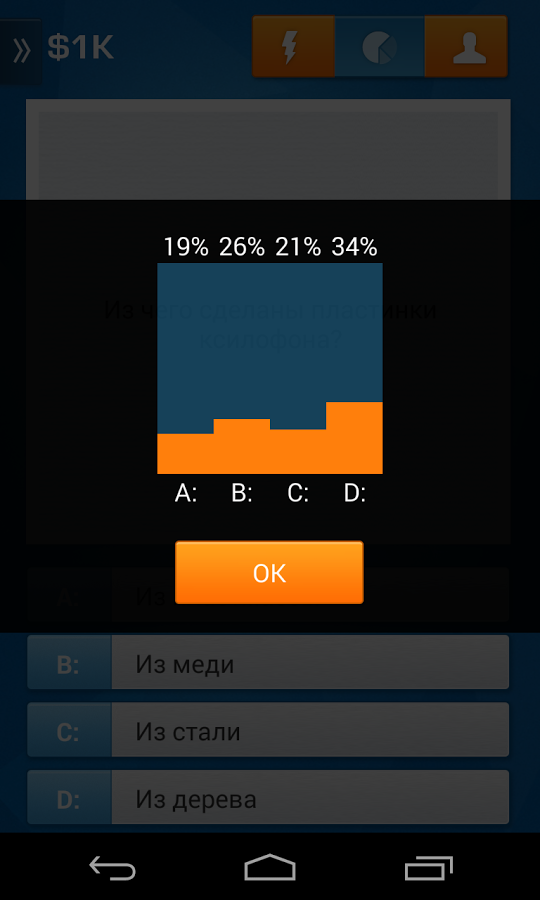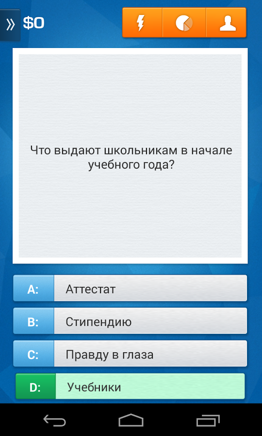 - "Увеличить шансы" - убирает два неправильных ответа, увеличивая ваши шансы.