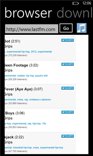 Просто нажмите на любую ссылку mp3 скачать, и он будет загружен и добавлен непосредственно в Музыка + Видео приложение