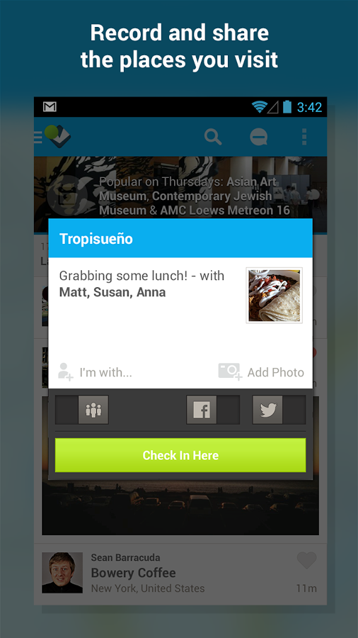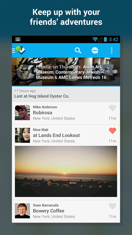 Вышли на прогулку? Где бы ни находились вы и ваши друзья, Foursquare поможет вам провести время как нельзя лучше. Присоединитесь к более чем 25 миллионам людей, которые уже пользуются Foursquare. Загрузите бесплатное приложение сейчас!