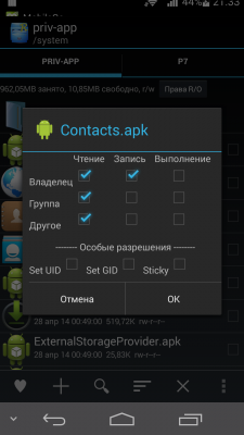 3. Файл закидываем в папку Priv-app с заменой (на всякий случай перед этим переименовываем оригинальный файл в contacts.bak)