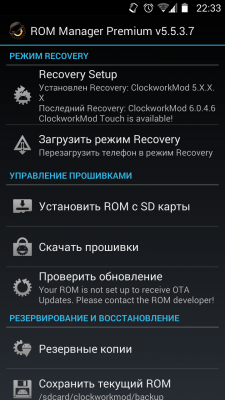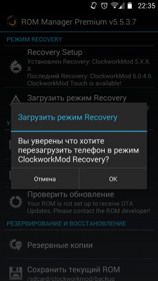 3. Загружаемся в CWM recovery. Или из Rom manager или: на выключенном телеоне удерживаем кнопку увеличения громкости и нажимаем кнопку вкл/выкл питания. Навигация в рекавери осуществляется с помощью кнопок громкости, а выбор кнопкой питания.