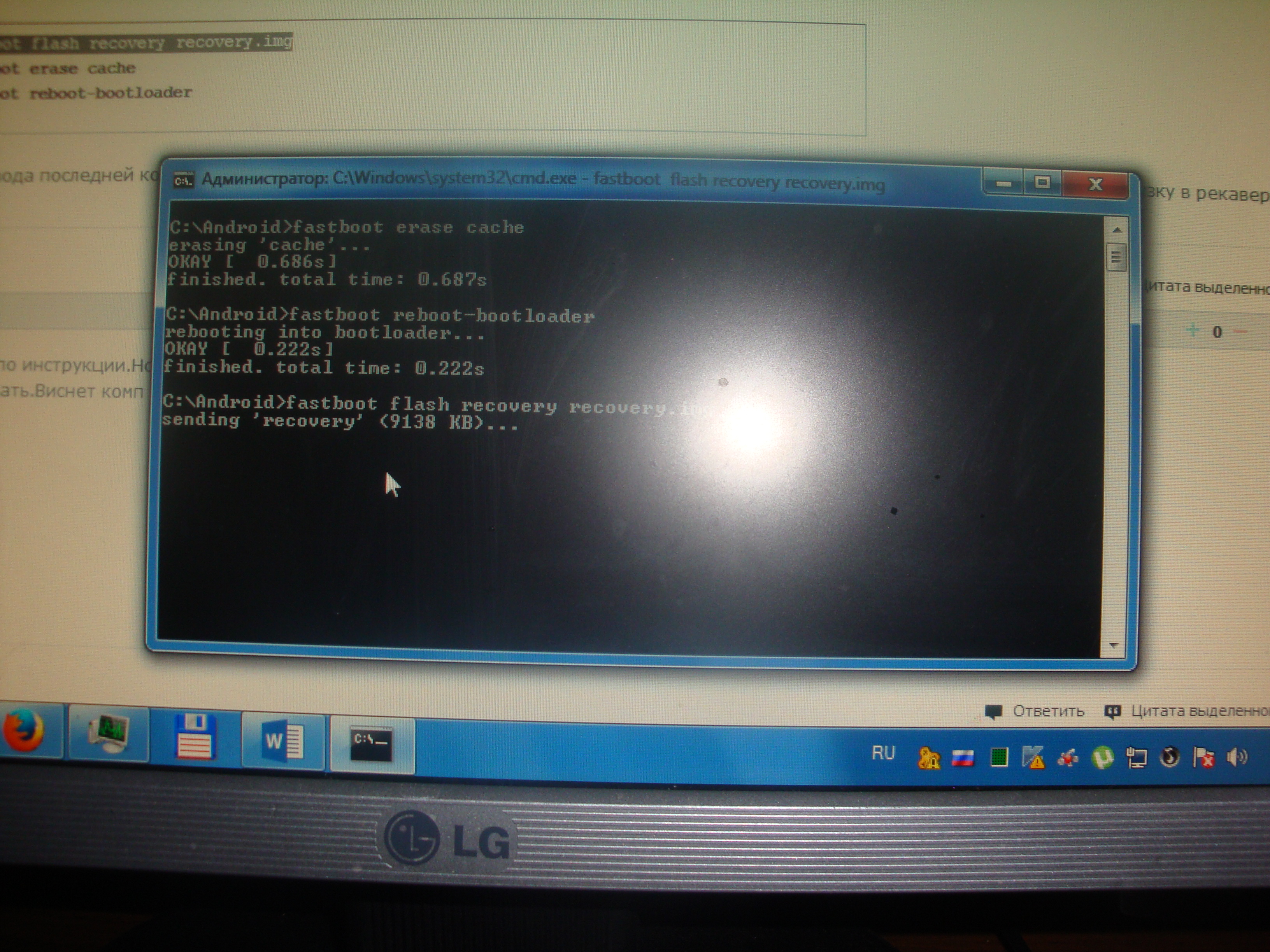 6. После ввода последней команды телефон перезагрузится в HBOOT, где вы можете выбрать обычную загрузку, Fastboot или загрузку в рекавери. Всё!Код:fastboot flash recovery recovery.img fastboot erase cache fastboot reboot-bootloader