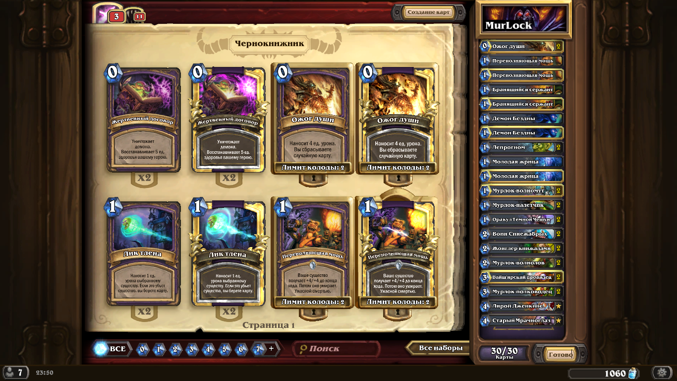 Стартовые карты нужно брать так, чтобы были 1-ки, демоны и тупо рашим.