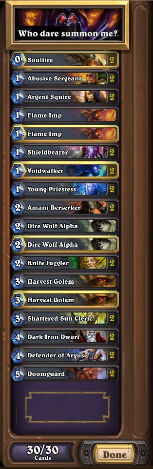 Демон Бездны – 1/3 за 1 ману и провокация. Может разменяться с 2 первыми дропами и отлвечь на себя агрессию, пока ваши бесы и жонгеры делают свое дело.