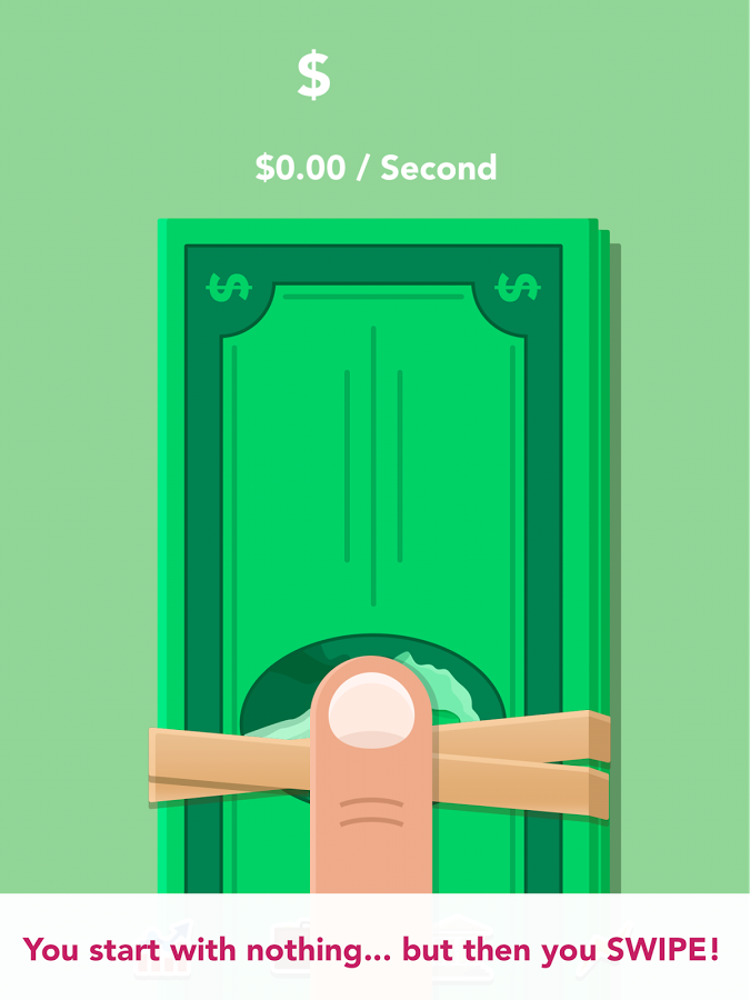 Проведите пальцем вверх по пачке купюр, чтобы заработать деньги. Чем больше вы зарабатываете, тем быстрее вам это удается… Как быстро вы сможете проводить пальцем вверх? Сколько сумеете заработать?