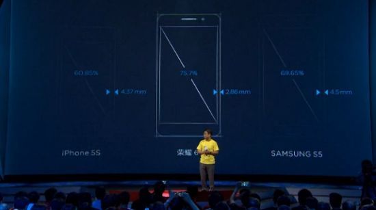 Сегодня компания Huawei, как и обещалось ранее, провела презентацию своего нового флагмана Huawei Honor 6. Компания представила девайс всего 6.5 мм толщиной и 5-дюймовым дисплеем, который занимает 75% передней поверхности устройство с боковыми рамками всего в 2.36 мм. Корпус нового Honor 6 выполнен из сплава алюминия, что по-идее должно значительно помочь уменьшить температуру устройства при интенсивном использовании.