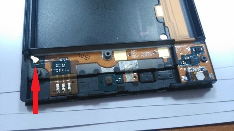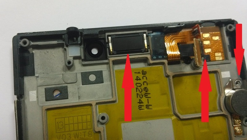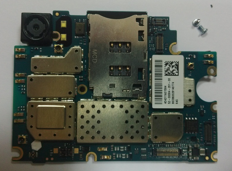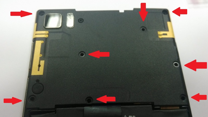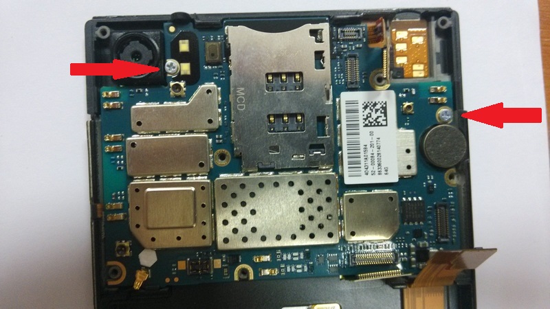 6. Снимаем с платы 4 шлейфа и антенный разъем. Выкручиваем 2 винта. И снимаем сердце нашего Mi3W. Снизу будет подключен еще шлейф кнопок включения и громкости. Его можно сразу и отклеить.