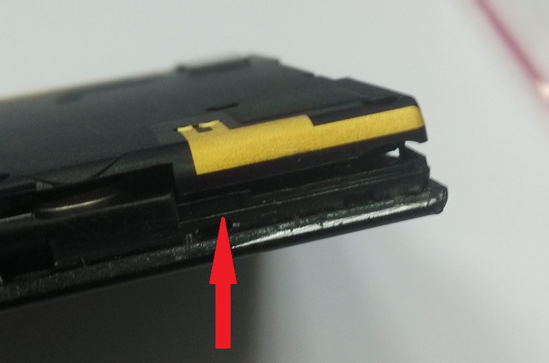 2. Тонким пластиком отщелкиваем защелки сперва слева корпуса, снизу, и сверху. Отщелкивать нужно постепенно, несколько раз проходя слева -> снизу -> сверху, чтобы не сломать защелки.