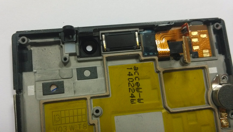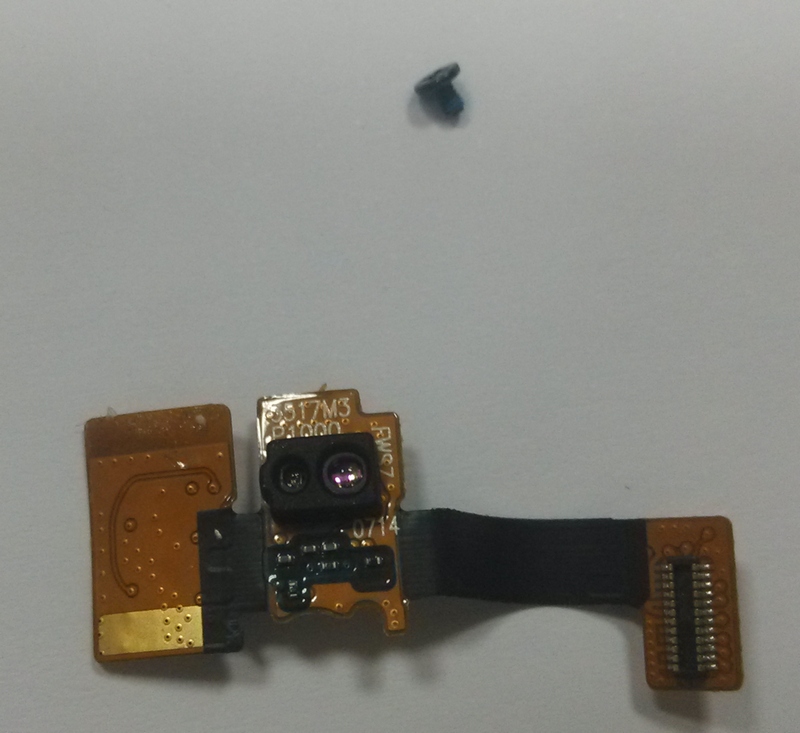 8. Сверху отклеиваем и снимаем датчик освещенности. Отклеиваем какую то хрень, похожую на микрофон, но это не он. Динамик не приклеен, вытаскивается легко.