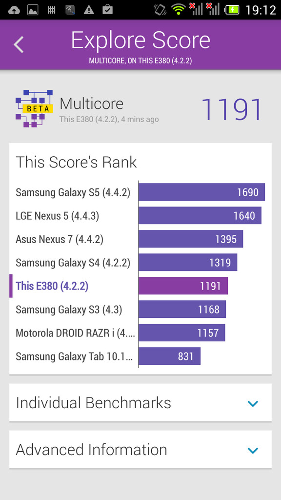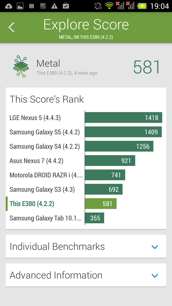 Аппаратная платформа Acer Liquid E3 — относительно бюджетная MediaTek (MTK6589 с частотой 1,2 ГГц), на базе которой построено большинство китайских смартфонов среднего класса. Но если у Full HD смартфонов разница по сравнению с устройствами на Qualcomm заметна (устройства работают небыстро, заметны притормаживания, не все тяжелые игры хорошо выполняются), то в смартфонах с HD-экранами (1280 х 720) таких проблем в основном нет. Разрешение экрана и аппаратные способности соответствуют друг другу, Acer E3 работает быстро. Плюсом платформы MediaTek является и ее энергоэффективность, она экономичнее Qualcomm, в итоге при небольшой жертве в производительности получается улучшить показатели автономной работы.