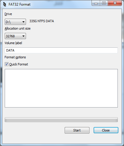 Программа специально предназначена для форматирования носителей больше 32 Гб в файловую систему FAT32. Если утилита выдаёт ошибку перед форматированием, выполняем пункт 3 (сначала форматируем программой SDFormatter), который всё же лучше выполнить обязательно. ВНИМАНИЕ! Чтобы смартфон корректно увидел Micro SDXC выбираем размер кластера 32 Кб! Лучше использовать быстрое форматирование (Quick), выполнять полное нет никакой необходимости.