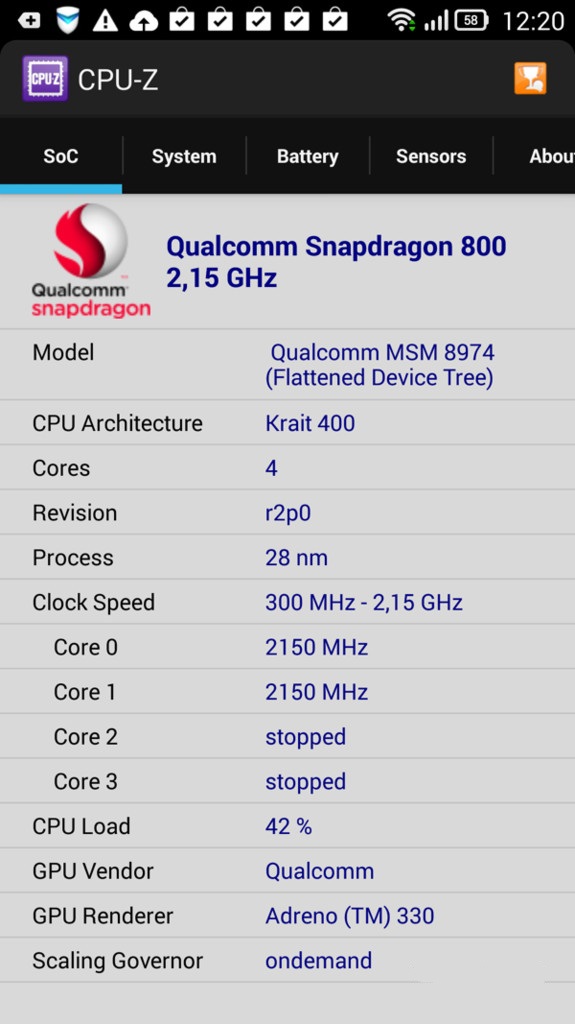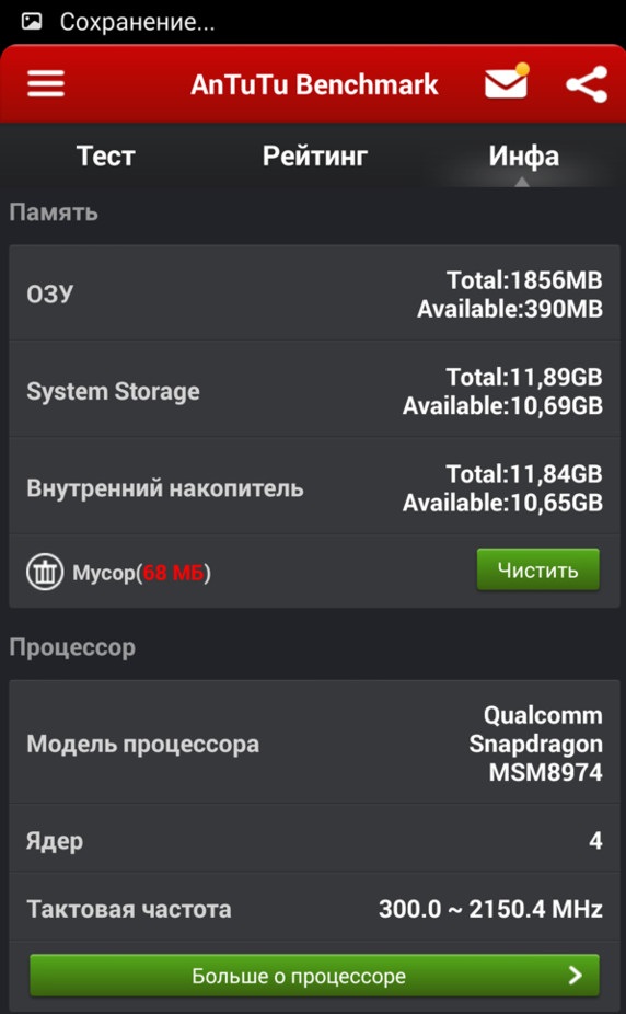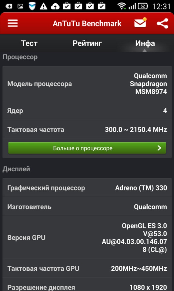 - Процессор: Qualcomm MSM8974, 4 ядра, 2,2 ГГц