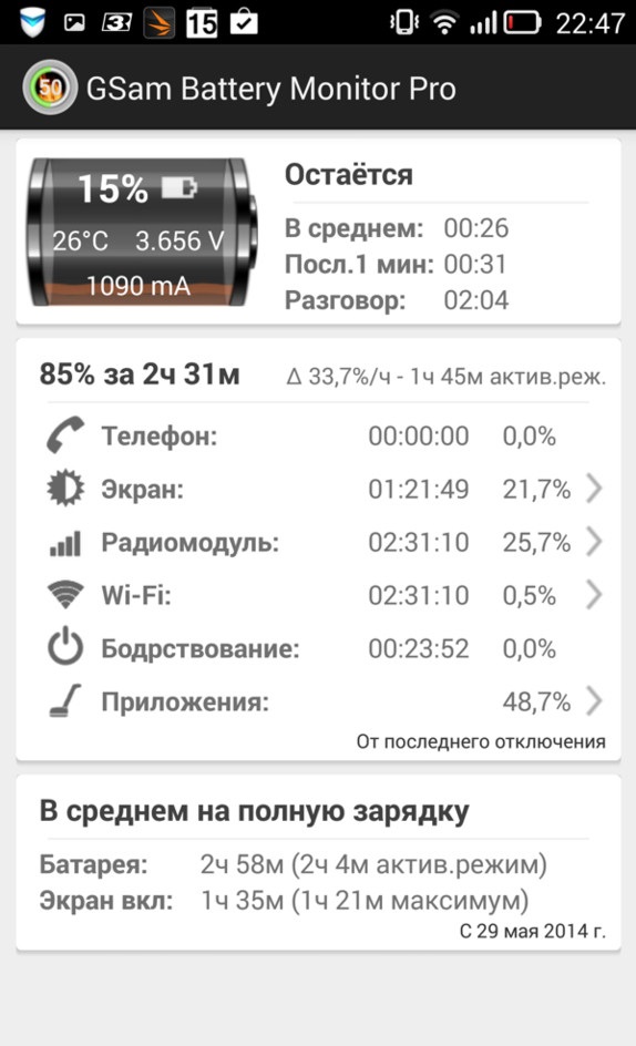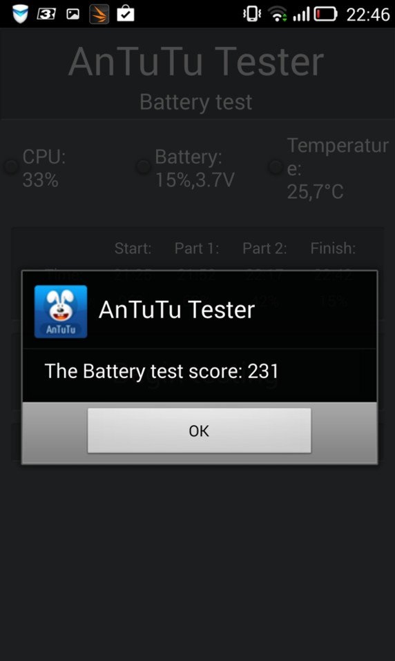 В Lenovo Vibe Z стоит аккумулятор емкостью 3000 мА*ч, это несменный источник питания, как сейчас заведено. Предшественник в тесте AnTuTu получал 381 балл, а здесь получается еще меньше. Правда, каких-то отличий на практике по времени работы нет, цифры сопоставимые. Активно пользуясь смартфоном, приходится заряжать его дважды в день, это обычная практика для подобных моделей. В режиме проигрывания видео в Full HD получается порядка 5,5 часов работы. В играх будет около 2,5 часов. При относительно лояльном режиме использования можно продержаться 1—1,5 дня.