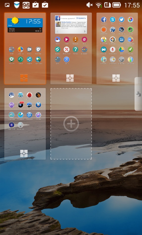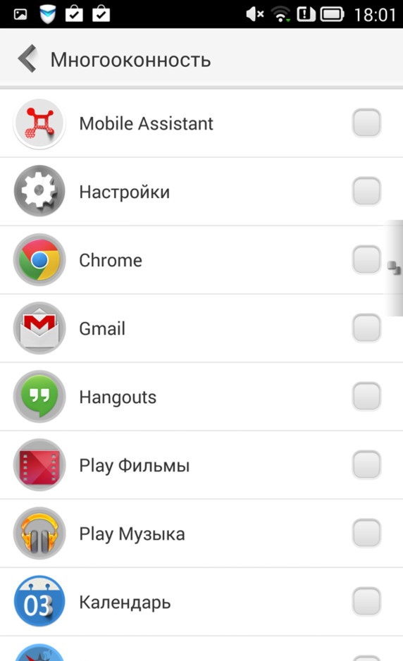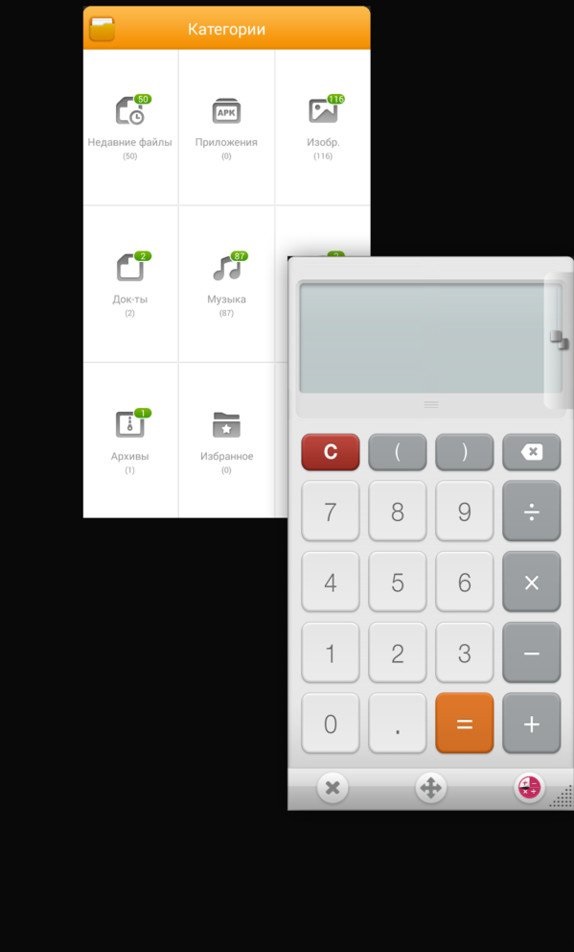 Смартфон позволяет сразу работать с несколькими приложениями, пользуясь преимуществами большого экрана. Но если в устройствах от Alcatel или Samsung экран делится на две половинки, которые в свою очередь занимают два разных приложения, здесь предлагается другой принцип. Смартфон позволяет тоже запустить две программы, однако они открываются в небольших окошках и могут располагаться как параллельно, так и накладываться друг на друга. Можно заодно менять степень прозрачности.