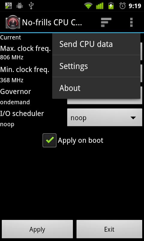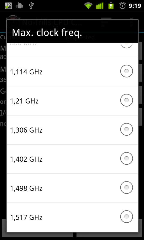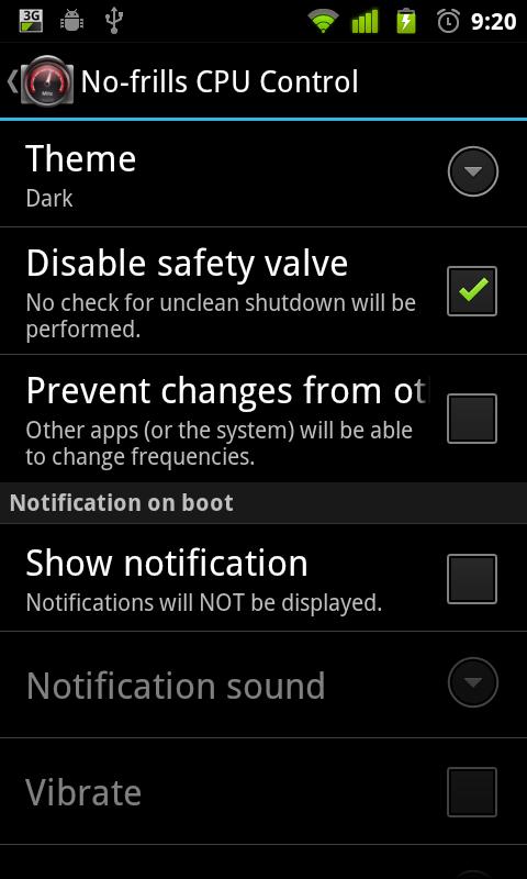 No-frills CPU Control - приложение для изменения максимальной и минимальной частоты процессора его работы, возможен выбор режима автоматического масштабирования.
