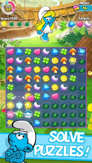 - Обмен головоломки, чтобы соответствовать три или более Smurfy объектов за один раз, чтобы очистить части и полных уровнях