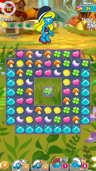 - Выстроить четыре или более Smurfy объекта подряд, чтобы разблокировать бонусы