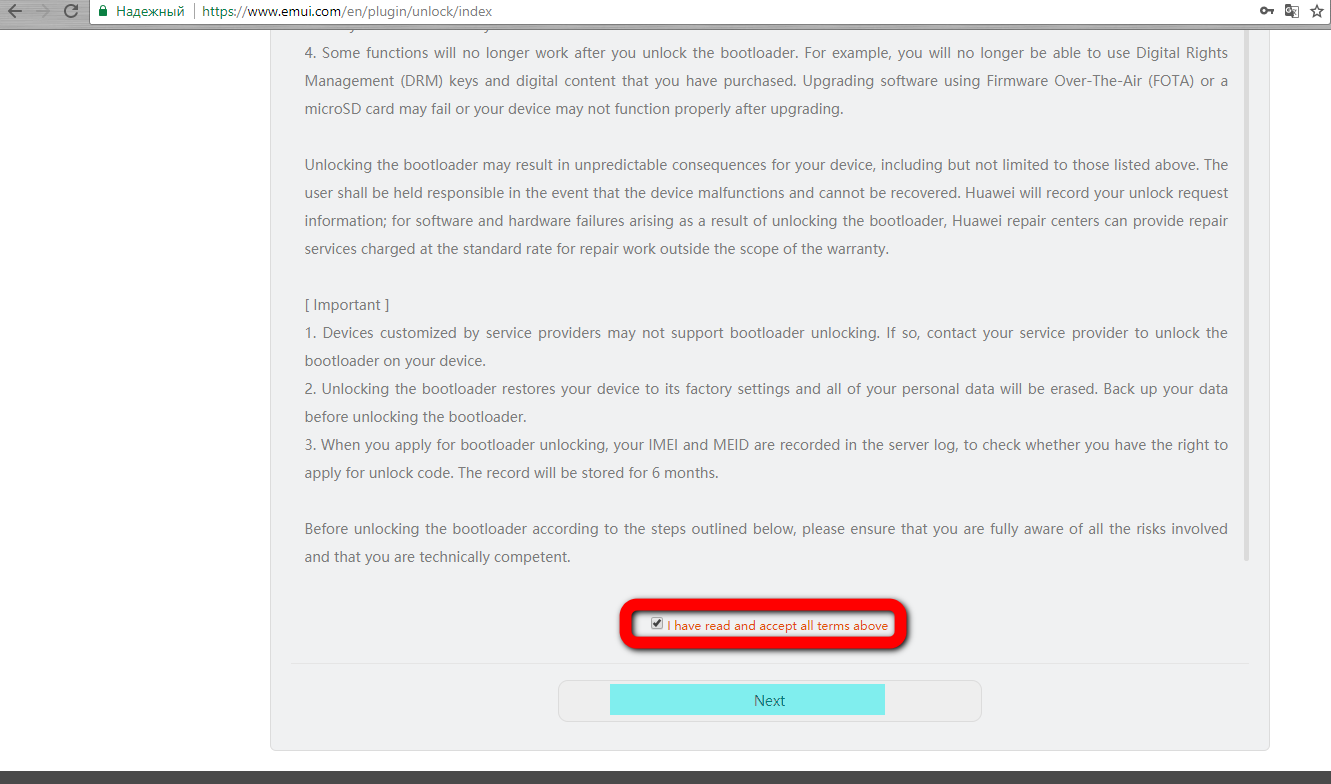 Разблокировка Bootloader'a Huawei через оф. сайт компании