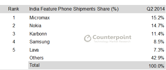 Важно понимать, что индийской компании удалось обойти корейскую исключительно по продажам смартфонов. За отчётный период в Индии, Micromax продали 16.6% всех смартфонов на рынке, а Samsung 14.4%. Устройства такой компании как Nokia, тоже довольно популярны в Индии, и за этот же период времени Nokia стала третьей компанией по продажам смартфонов со своими 10.9%. На данный момент продажи Micromax продолжают расти и динамика, скорее всего, сохранится.
