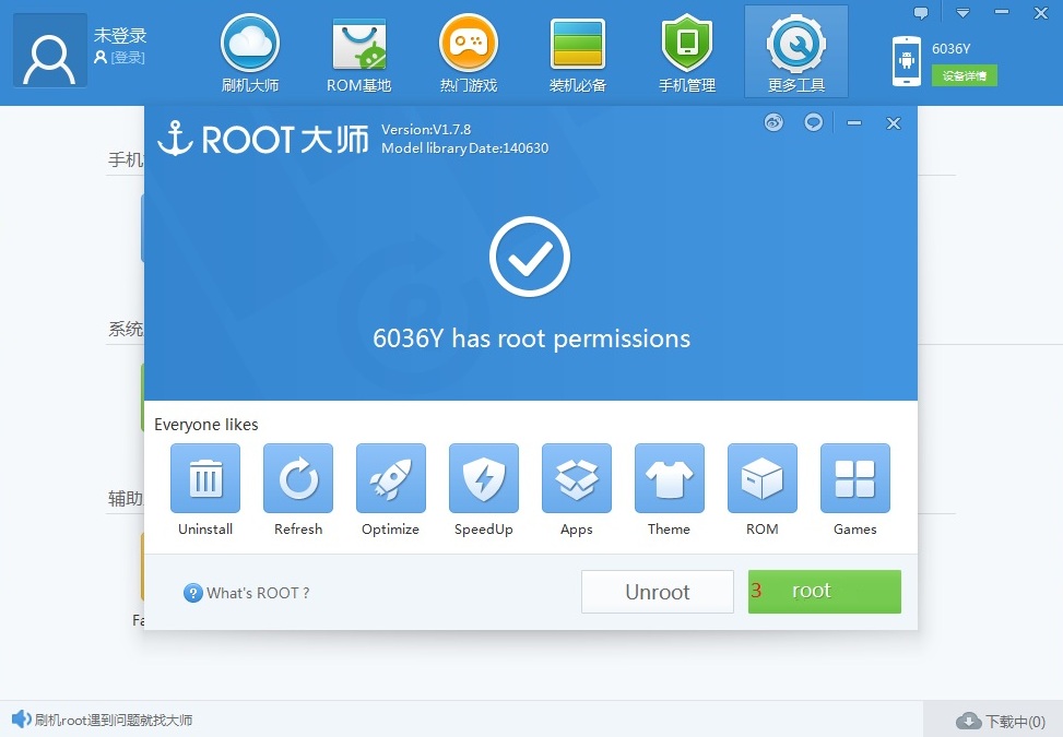 4. Скачается софт в котором нужно нажать на зеленую кнопку с надписью ROOT.