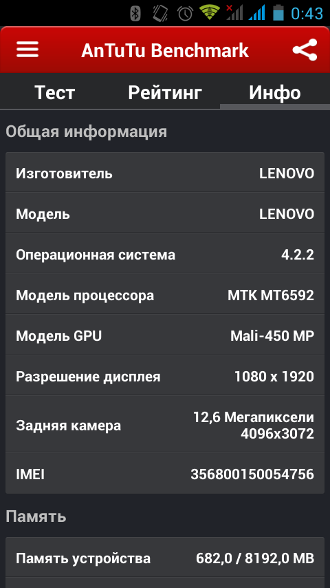 Смартфон Lenovo Octa MTK6592 5.0 " 13.0MP, microSD16 Гб