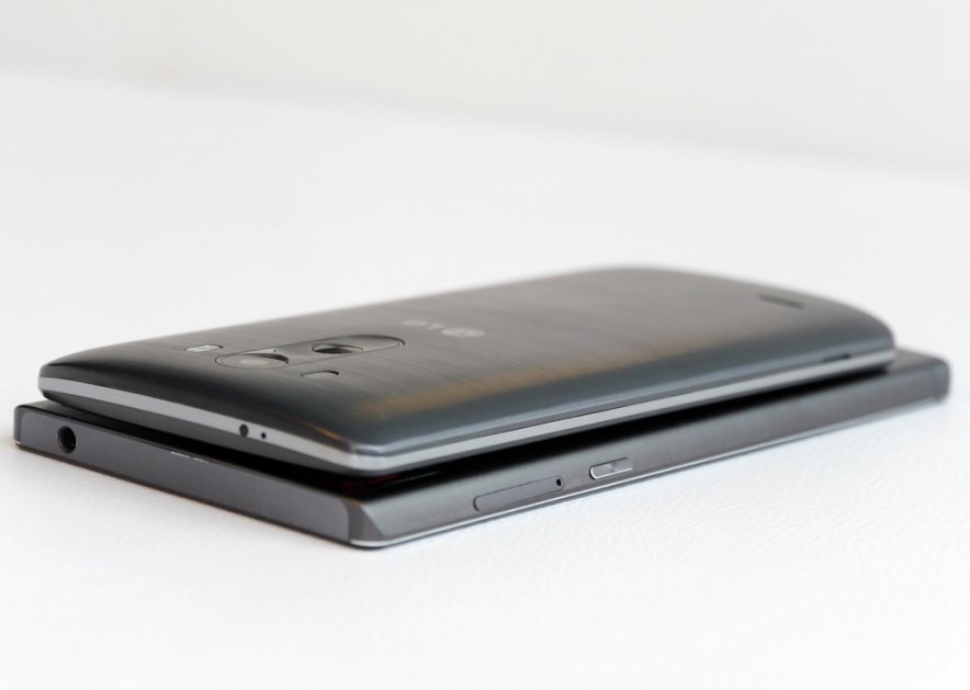 Экран занимает более 80% лицевой поверхности, это очень много. За счет минимальных рамок 6-дюймовый смартфон не сильно больше, чем 5,5- или даже 5,2-дюймовые модели. Сравним с LG G3: