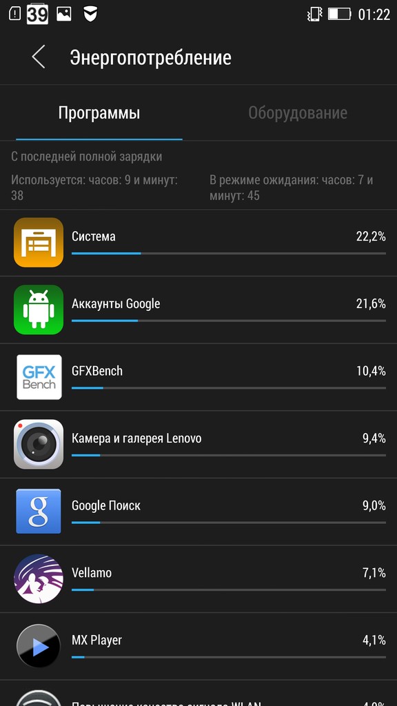 В повседневной работе Lenovo Vibe Z2 Pro работает около 1,5—2 дней, благодаря такому аккумулятору. Для планшетофона показатель обычный, в принципе. Есть алгоритмы экономии энергии, удобное приложение, позволяющее настроить использование аккумулятора отдельными программами, выбрать свой режим.