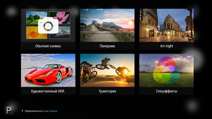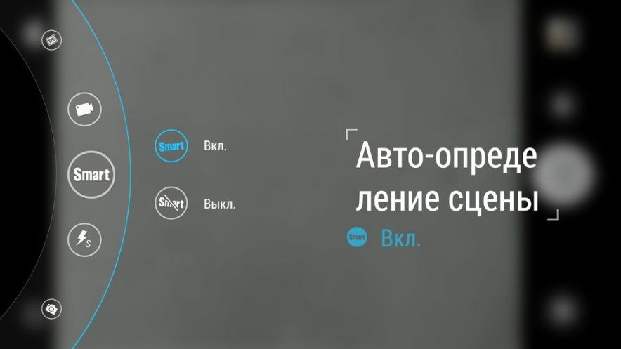 Смартфон предлагает оригинальный интерфейс, который отличается от ранее выпущенных моделей компании. Тут можно выбрать Profi Camera со множеством ручных настроек, причем режим выполнен как в Nokia Lumia, стоит потянуть кнопку съемки, и открываются ползунки регулировки баланса белого, экспозиции, выдержки и так далее, все очень удобно. Смарт Камера автоматически определяет сцену, настраивает параметры, для большинства пользователей это будет оптимальный режим.