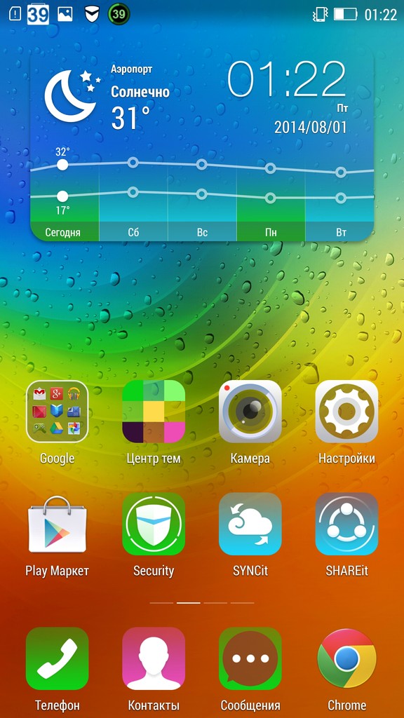 Фирменный интерфейс Lenovo Vibe UI выглядит отлично, по последним веяниям тут нет отдельного главного меню, а на рабочих столах могут располагаться виджеты, иконки приложений, папки с приложениями — во многом аналогично iPhone, но с добавкой в виде возможности размещения виджетов. Система максимально удобна, отдельное меню Android-смартфонам просто не нужно.