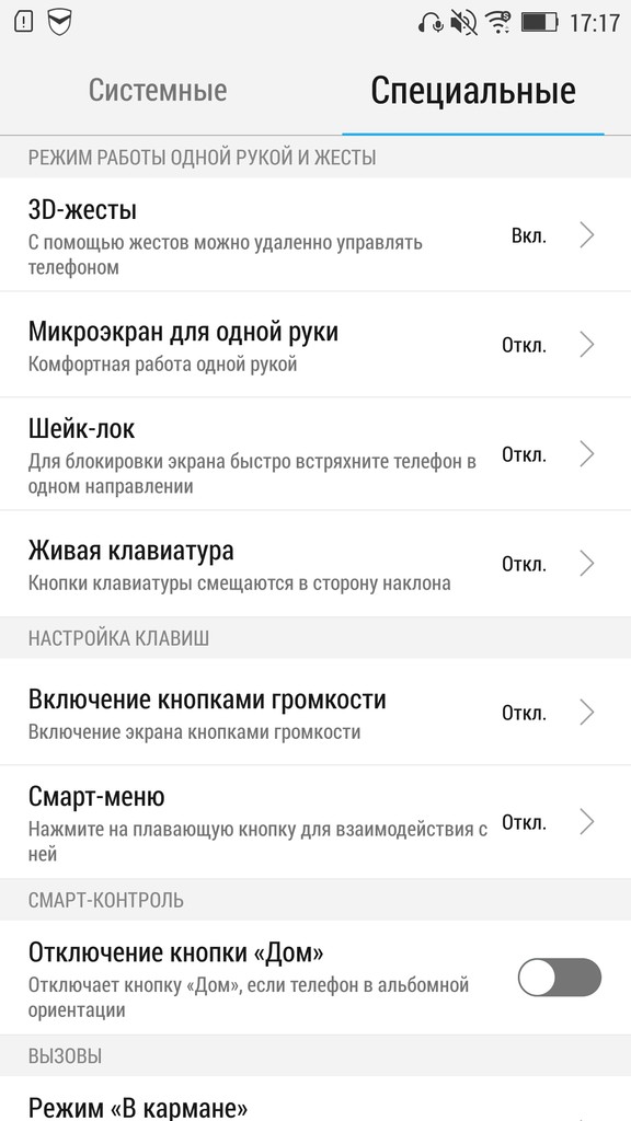 Интерфейс продуман отлично, есть звуковые профили, множество приятных настроек. Например, присутствует опция заглушения звука при повороте экраном вниз, перелистывание композиций в плеере встряхиванием влево или вправо, ответ на звонок при поднесении телефона к уху, и так далее — смотрите скриншоты. В центре уведомлений можно отсортировать порядок функций, удалить неиспользуемые. В менеджере уведомлений, соответственно, указать права для приложений: какие смогут выводить уведомления, какие — нет, с каким приоритетом.