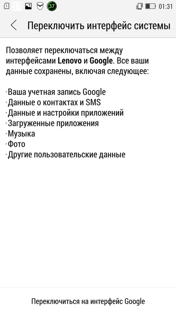 В Lenovo предлагается уникальная фишка: переключение на «чистый» интерфейс Google.