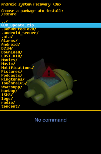 5. Выбрать GBC_update.zip. Дождаться установки обновления.