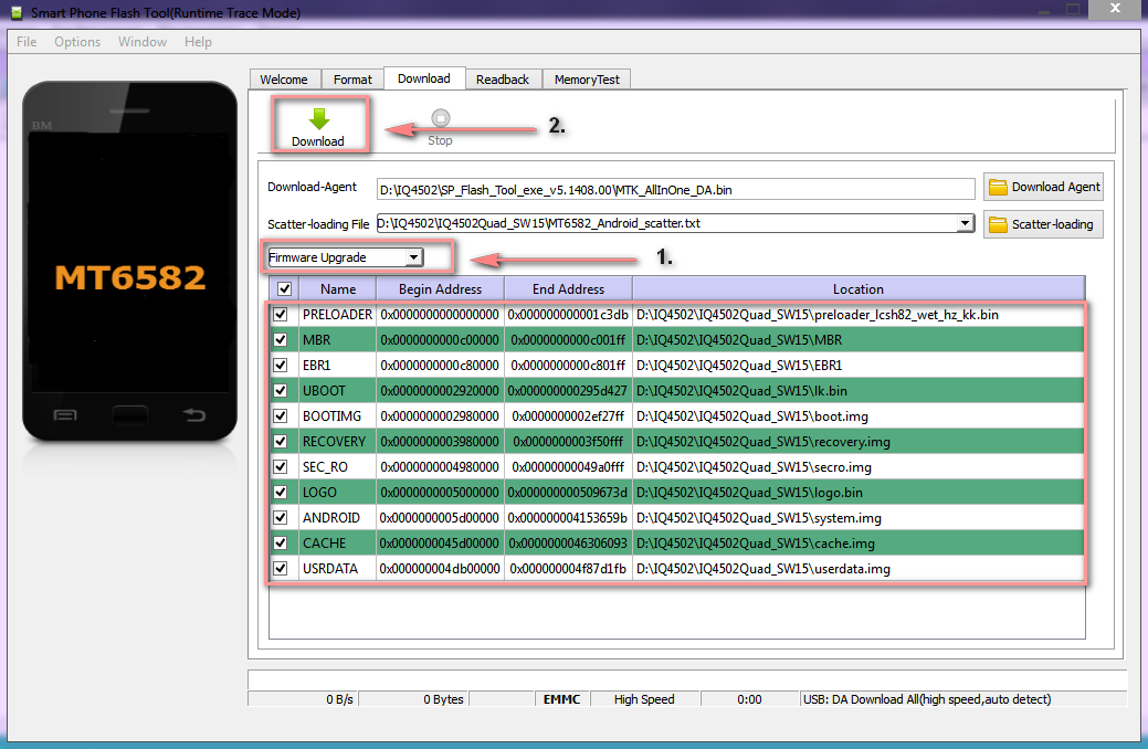 2. Скачать программу для прошивки SP Flash Tool и нужную прошивку, архивы распаковать в корень диска, к примеру в папку IQ4502 на диске D.
